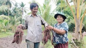 นายสมพล และนางสุภาพร แช่ติ้ว สองสามีภรรยา เกษตรกรอำเภอเมืองสงขลา บ้านยางงาม ม.9 ต.ทุ่งหวัง อ.เมือง จ.สงขลา ปลูกมันหวานญี่ปุ่น 1 งาน หรือ 100 ตารางวา เก็บผลผลิตขายสร้างรายได้เลี้ยงครอบครัว