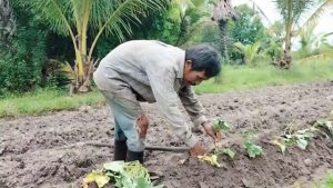 นายสมพล แซ่ติ้ว กล่าวว่า ตนและครอบครัวใช้พื้นที่ประมาณ 1 ไร่ ปลูกแตงกวา ถั่วฝักยาว มะระจีนพื้นบ้าน ข้าวโพดหวาน หมุนเวียนกันตลอดทั้งปี เพื่อจำหน่ายสร้างรายได้แก่ครอบครัว และได้ใช้พื้นที่ประมาณ 1 งาน หรือ 100 ตารางวา ปลูกมันญี่ปุ่น หรือมันหวานญี่ปุ่น ซึ่งเป็นพืชที่ปลูกง่ายให้ผลผลิตเร็ว ต้นทุนต่ำ โดยการไถเตรียมแปลง ยกร่องกว้างประมาณ 30 เซนติเมตร และหว่านปุ๋ยหมักใบไม้ที่ทำขึ้นมาเองเพียงเล็กน้อย ก่อนที่จะปักท่อนพันธุ์มันลงไป