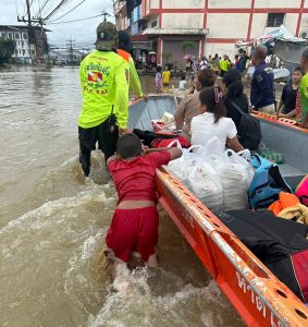 วันนี้ (30 พ.ย. 67) ทีมกู้ภัยพร้อมเรือท้องแบน 2 ลำ เข้าพื้นที่หมู่บ้านอีซีโอ้ หมู่บ้านจามจุรี บ้านหน้าควนลัง ต.ควนลัง และที่ย่านชุมชนเส้นทางถนนพลพิชัยช่วงหน้าการประปาฯไปจนถึงหน้ามหาวิทยาลัยหาดใหญ่ ภารกิจเป็นการอพยพประชาชนออกจากที่อยู่อาศัยที่ยังมีน้ำท่วมกว่า 30 ราย , การแจกจ่ายอาหาร น้ำดื่ม อาหารสัตว์เลี้ยง ให้กับประชาชนที่ได้รับความเดือดร้อนในช่วงที่น้ำท่วมสูง โดยมีผู้ประสบภัยส่วนหนึ่งได้ขอความช่วยเหลือมาทางสายด่วน1163 และทางเฟสบุคแฟนเพจของมูลนิธิฯ