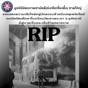 ทางมูลนิธิฯ ของแสดงความเสียใจต่อการสูญเสียในครั้งนี้เป็นอย่างยิ่ง และขอเป็นกำลังใจให้ทุกท่านก้าวผ่านเหตุการณ์ครั้งนี้ไปด้วยกัน
