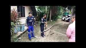 งูจงอางตัวใหญ่โผล่เป็นตัวที่ 3 หลังวันก่อนเครือข่ายทีมอสรพิษวิทยาภาคใต้ จับ 2 จงอางยักษ์แอบพลอดรักข้างบ้านอดีตข้าราชการตำรวจ