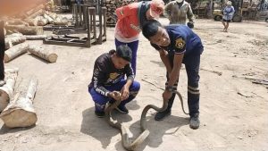 วันนี้ 26 กรกฎาคม 2567 ขณะที่นาย วินัย ใจเพชร อายุ 70 ปี เจ้าของโรงเลื่อยไม้วินัย เลขที่ 71 ม.8 ต.ท่าประดู่ อ.นาทวี จ.สงขลา เอาไซไปดักปลา เพื่อนำมาเป็นอาหาร โดยนำไปดักปลาที่คลองหลังโรงเลื่อยไม้ ตั้งแต่คืนที่ผ่านมา เช้านี้ ได้เดินไปดูว่าไซที่วางดักปลาไว้ จะมีปลาวายมาติดไซหรือเปล่า ถ้าติด ก็จะได้เอาปลามาเป็นอาหาร แต่พอไปถึงที่ไซดักปลาก็ต้องตกใจ เพราะ ในไซดักปลาแทนที่จะเป็นปลา กลับกลายเป็นงูจงอางตัวใหญ่เข้าไปติดอยู่ในไซดักปลา ด้วยความตกใจ และกลัวว่าจงอางถ้าหลุดออกมาจะเป็นอันตรายต่อคนงานในโรงเลื่อยฯ จึงรีบประสานไปยังนายทวีศักดิ์ บุญเศษ ทีมอสรพิษวิทยาภาคใต้ ให้ช่วยมาจับจงอางตัวใหญ่ที่ติดไซดักปลาให้ด่วน หลังนายทวีศักดิ์ ฯ ได้รับการประสานจึงพร้อมด้วย กู้ชีพ อบต.สะท้อน และกู้ชีพ อบต.ท่าประดู่ รีบนำอุปกรณ์ในการจับสัตว์เลื้อยคลานรุดเข้าตรวจสอบและจับทันที