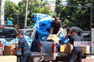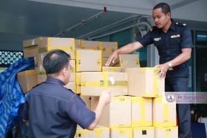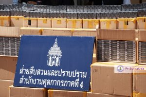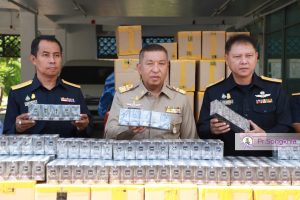 วันนี้ (8 ส.ค. 66) เวลา 10.00 น. นายวรณัฎฐ์ หนูรอต รองผู้ว่าราชการจังหวัดสงขลา พร้อมด้วย นายยุทธนา พูลพิพัฒน์ ผู้อำนวยการสำนักงานศุลกากรภาคที่ 4 ร่วมแถลงข่าวกรณีการจับกุมบุหรี่เถื่อนลักลอบหนีศุลกากร ยี่ห้อ John จำนวน 1,000,000 มวน มูลค่า 4,500,000 บาท น้ำหนักรวม 1,300 กิโลกรัม ลักลอบนำเข้ามาในราชอาณาจักร โดยมีการขนส่งผ่านศูนย์ไปรษณีย์หาดใหญ่ ตำบลควนลัง อำเภอหาดใหญ่ จังหวัดสงขลา เพื่อหลบเลี่ยงการตรวจสอบจากเจ้าหน้าที่รัฐ