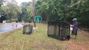 เราเลยจำเป็นต้องเข้าสู่กรงดักอัตโนมัติ ซึ่งเป็นการเซ็ดระบบเอาไว้ถ้ามีน้องหมาเข้าไปเมื่อไหร่กรงจะปิดทันที นี่คือสิ่งที่เราใช้และสามารถจับน้องหมาได้ทั้งหมด 15 ตัว ซึ่งเป็นเพศเมีย 9 เพศผู้อีก 6 ตัวแต่เราก็ยังมีอุปสรรคในการทำอยู่