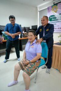 (29 ส.ค. 68) นายกแป้น มอบหมาย นายเจตสกุล เพ็ชรสกุล (รองปุ๋ย) พร้อมกับ นางสาวนิลุบล เจริญพานิช (รองจู) รองนายกฯ ร่วมเป็นประธานในพิธีปิดโครงการฝึกอบรบส่งเสริมอาชีพ กิจกรรมเทคนิคการนวดผ่อนคลาย 8 กลุ่มอาการ พร้อมทั้งมอบเกียรติบัตรผู้ที่สำเร็จหลักสูตรทั้ง 20 คน ประจำปีงบประมาณ 2568 ณ ณ ห้องประชุมอาคารกองสวัสดิการอนามัย สามชัย