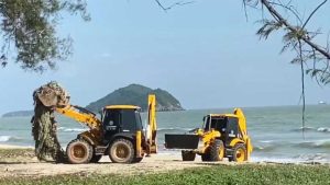 กองสาธารณสุขและสิ่งแวดล้อม เทศบาลนครสงขลา ยังคงระดมเครื่องจักรและคนงานเจ้าหน้าที่กระจายกำลังกันจัดเก็บขยะจากทะเลที่กองเรียงรายชายหาดชลาทัศน์ หลังจากเมื่อวานนี้จัดเก็บบริเวณนางเงือกทองและบริเวณชายหาดชลาทัศน์บางช่วงเสร็จไปแล้ว เพื่อให้ชายหาดทั้งสองหาดกลับมามีความสะอาดสวยงาม เพื่อต้อนรับนักท่องเที่ยวทั้งชาวไทยและชาวมาเลเซียที่เดินทางเข้ามาท่องเที่ยวทุกวันไปจนถึงเทศกาลตรุษจีน
