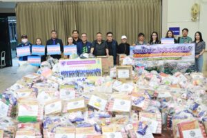 – คุณเจษฎา ทองเชิญ และคุณอัญญการ นาคประสม บริจาคน้ำดื่ม มาม่า ขนม