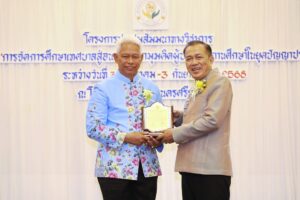 (1 ก.ย. 2568) นายกแป้น มอบหมาย นายเจตสกุล เพ็ชรสกุล (รองปุ๋ย) รองนายกฟฯ เข้ารับโล่ผู้ทำคุณประโยชน์ให้กับการศึกษาท้องถิ่น และร่วมพิธีมอบโล่ผู้บริหารสถานศึกษาสมาชิกชมรมฯ ผู้เกษียณอายุราชการ ประจำปี 2568 ในการประชุมสัมมนาทางวิชาการ เรื่อง “การจัดการศึกษาเทศบาลสู่อนาคตพลิกมุมคิดผู้บริหารสถานศึกษาในยุคปัญญาประดิษฐ์” ณ โรงแรมแรมทวินโลตัส อำเภอเมือง จังหวัดนครศรีธรรมราช พร้อมกับเยี่ยมชมบูธการจัดการศึกษาของโรงเรียนในสังกัดเทศบาลนนครนครศรีธรรมราชด้วย