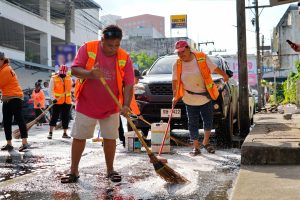 (9 ม.ค.68) พล.ต.ท.สาคร ทองมุณี นายกเทศมนตรีนครหาดใหญ่ มอบหมาย นายสัมฤทธิ์ บุญรัตน์ รองนายกเทศมนตรี พร้อมด้วย หัวหน้าฝ่าย/ส่วน สำนักสาธารณสุขและสิ่งแวดล้อม และเจ้าหน้าที่ฯ ลงพื้นที่ร่วมกันทำความสะอาดและฉีดล้างถนน ในกิจกรรม Big Cleaning Day บริเวณถนนนิพัทธิ์สงเคราะห์ 1,2