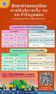 การจัดเก็บค่าธรรมเนียมเก็บขนขยะ และค่ากำจัดขยะมูลฝอย พร้อมกัน ในวันอังคารที่ 23 มกราคม 2567 เป็นต้นไป