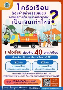 • ค่าธรรมเนียมบริการเก็บและขนขยะมูลฝอย 20 บาท