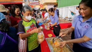 ตลาด“อิ่มท้อง อิ่มบุญ 9 ห้อง 9 บาท ได้รับความสนใจจากประชาชน และนักท่องเที่ยวจำนวนมากหลั่งไหลเข้ามาเลือกซื้ออาหารและเครื่องดื่ม เนื่องจากมีอาหารให้เลือกกินตามความพอใจ หลากหลายชนิด ซึ่งมีประชาชนต่อแถวจองคิวซื้อ และขายหมดอย่างรวดเร็ว สำหรับเงินรายได้จากการจำหน่ายอาหารทั้งหมดจะไม่มีการหักค่าใช้จ่ายใดๆ ทั้งสิ้นโดยจะร่วมกันทำบุญสมทบทุน โครงการพระครูหมอมอบรถเข็นผู้พิการ
