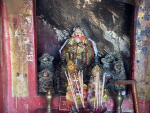 ในปี พ.ศ. 2516 “นางเปีย ฮวดอุปัด” ได้ขออนุญาตบูรณะศาลเจ้า ต่อกรมศิลปากร พร้อมแบบแปลนสถาปัตยกรรมจีนแบบดั้งเดิม เมื่อครั้นเริ่มบูรณะ… “พระเอ็งบ้วนต๊ะ” ได้ประทับทรง และบอกให้ไปตามหาพระเอ็งบ้วนต๊ะองค์เล็กที่หายไปกลับมา และเป็นเรื่องที่น่าปาฏิหาริย์ เมื่อนางเปียตามหาองค์พระจนเจอ โดยได้คืนมาจากชาวจีน ที่ถนนเพชรคีรี ตำบลบ่อยาง ขณะที่บูรณะอยู่ ก็ได้มีชาวปีนังเดินทางมาหาดใหญ่ และได้นำพระเอ็งบ้วนต๊ะองค์ใหญ่ มาประดิษฐาน ณ ศาลาหรือศาลเจ้า หลังจากบูรณะศาลเจ้าเสร็จ นางเปียก็ได้สร้างรูปปั้นปูนปู่ทวดหัวเขาแดง เพื่อเอาไว้สักการะ