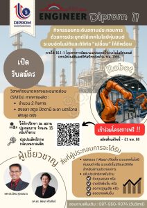 เปิดรับสมัครแล้ว!! กิจกรรมยกระดับสถานประกอบการด้วยการประยุกต์ใช้เทคโนโลยีหุ่นยนต์ ระบบอัตโนมัติ และดิจิทัล “เปลี่ยน” ให้ดีพร้อม ปีงบประมาณ 2568 จัดโดย ศูนย์ส่งเสริมอุตสาหกรรมภาคที่ 11 กรมส่งเสริมอุตสาหกรรม (DIPROM)