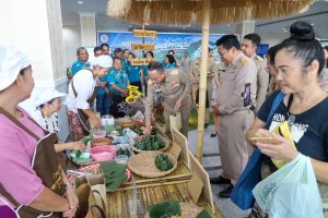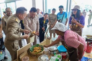 เยี่ยมชมการจำลองวิถีชีวิตและการจำหน่ายสินค้าของตลาดสายเตราะบ้านในไร่