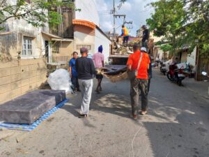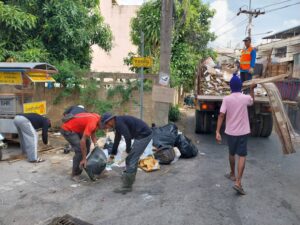 ดำเนินการจัดเก็บขยะตกค้างน้ำท่วม ขยะชิ้นใหญ่ต่อเนื่องบริเวณ