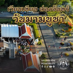วันที่ 24 กุมภาพันธ์ 2567 พล.ต.ท.สาคร ทองมุณี นายกเทศมนตรีนครหาดใหญ่ พร้อมด้วย รศ.ดร.วิชัย กาญจนสุวรรณ รองนายกเทศมนตรีนครหาดใหญ่ นายวินัย ปิ่นทอง รองนายกเทศมนตรีนครหาดใหญ่ ปลัดเทศบาล สมาชิกสภาเทศบาล เข้าร่วมกิจกรรมเวียนเทียนส่องจันทร์เนื่องในวันมาฆบูชา และยังเปิดโอกาสให้ เด็ก เยาวชนและประชาชนได้สัมผัสประสบการณ์การดูดาวผ่านกล้องดูดาว เพื่อจุดประกายความคิด สร้างจินตนาการและสร้างแรงบัลดาลใจในการเรียนรู้