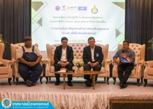 วันอังคารที่ 21 มกราคม 2568 นายทวีศักดิ์ ทวีรัตน์ นายกเทศมนตรีเมืองคอหงส์ มอบหมายให้ นายชัยวัฒน์ โพธิพงศา รองปลัดเทศบาลฯ เป็นประธานในกิจกรรมเสวนาเมือคอหงส์สู่จุดหมายปลายทางเมืองท่องเที่ยวสีเขียว ซึ่งจัดโดยฝ่ายวิจัยและบริการวิชาการ คณะการจัดการสิ่งแวดล้อม มหาวิทยาลัยสงขลานครินทร์ โดย ดร.ปรัชญากร ไชยคช รองคณบดีฝ่ายวิจัยและบริการวิชาการ คณะการจัดการสิ่งแวดล้อม มหาวิทยาลัยสงขลานครินทร์ เป็นผู้ดำเนินการเสวนา ร่วมกับ นายสิทธิศักดิ์ ต้นมงคล ประธานสภาเศรษฐกิจหาดใหญ่ นายเทพรัตน์ จันทพันธ์ อดีตอาจารย์จากสถาบันทักษิณคดีศึกษา มหาวิทยาลัยทักษิณ และ นายศิวกร สนิทวงศ์สถาปนิกชำนาญการ จากเทศบาลนครหาดใหญ่ ร่วมเสวนา โดยตัวแทนผู้ประกอบการร้านค้าจากหลาดสายเตราะบ้านในไร่เทศบาลเมืองคอหงส์ ได้ร่วมนำเสนอผลิตภัณฑ์และวัตถุดิบในท้องถิ่นในการเสวนาครั้งนี้ด้วย ณ ห้องเดอะลอฟท์ ชั้น 1 โรงแรม ที อาร์ ร็อค ฮิลล์ เขตเทศบาลเมืองคอหงส์