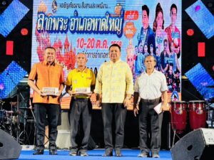 วันที่ 13 ตุลาคม 2568 เวลา 17.30 น. นายเอก ยังอภัย ณ สงขลา นายอำเภอหาดใหญ่ พร้อมด้วยนางมุกดา ยังอภัย ณ สงขลา ประธานแม่บ้านมหาดไทยอำเภอหาดใหญ่ รับฟังการเสวนาเรื่อง “ประวัติความเป็นมาของประเพณีลากพระ” ในงานประเพณีลากพระ อำเภอหาดใหญ่ ครั้งที่ 1 ประจำปี 2568 การเสวนาครั้งนี้ได้รับเกียรติจากพระครูภาวนากัลยาณคุณ วิ.ดร. รองเจ้าอาวาสวัดมหัตตมังคลาราม (วัดหาดใหญ่ใน) เจ้าคณะตำบลหาดใหญ่ เขต 1 ผศ.ไพรัช วัชรพันธุ อาจารย์ประจำคณะวิทยาการจัดการ มหาวิทยาลัยสงขลานครินทร์ ร้อยเอกสุวิทย์ พรหมหมวก ผู้อำนวยการโรงเรียนเทศบาล 1 (ชุมชนบ้านอุดมทอง) และนายสุพิศ แว่นแก้ว นายช่างเรือพระเชิงอนุรักษ์วัดมะเดื่อทอง (กะโผะ) ครูช่างศิลปหัตถกรรมของสถาบันส่งเสริมศิลปหัตถกรรมไทย (องค์การมหาชน) ประจำปี 2568 ร่วมเป็นผู้เสวนา โดยมีนางสาวปิยพัชร์ วุ่นดำ ปลัดอำเภอหัวหน้ากลุ่มงานบริหารงานปกครอง ปลัดอำเภอ ผู้นำท้องที่ และประชาชนชาวอำเภอหาดใหญ่ ร่วมรับฟังอย่างคับคั่ง ณ เวทีกลางบริเวณหน้าที่ว่าการอำเภอหาดใหญ่ จังหวัดสงขลา