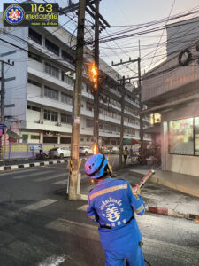 วันพุธที่ 30 กรกฎาคม พ.ศ.2568 เวลา 05.54 น. โดยประมาณศูนย์วิทยุกู้ภัยจังหวัดสงขลา(ศูนย์มิตรภาพ) ได้รับแจ้งว่ามีเหตุเพลิงไหม้เสาไฟฟ้า เหตุเกิดหน้า 7/11 ข้างโรงเรียนศรีนคร จึงได้แจ้งให้เจ้าหน้าที่แผนกบรรเทาสาธารณภัย-กู้ภัย ของมูลนิธิฯ จัดเจ้าหน้าที่พร้อมรถดับเพลิงเล็ก และอุปกรณ์ เข้าไประงับเหตุดังกล่าว เมื่อไปถึงที่เกิดเหตุพบเพลิงกำลังลุกไหม้สายไฟบนเสาไฟฟ้า เจ้าหน้าที่ของทางแผนกบรรเทาฯ จึงได้ทำการฉีดสกัดเพลิงที่กำลังลุกไหม้ จนสามารถควบคุมเพลิงไว้ได้
