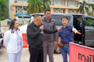 (29 ต.ค. 68)นายกแป้น พร้อมด้วย นางสาวนิลุบล เจริญพานิช (รองจู) รองนายกฯ ลงพื้นที่สั่งการให้เจ้าหน้าที่ สำนักช่างเทศบาลนครหาดใหญ่ แก้ปัญหาชาวบ้านหลังแสงทอง เพื่อป้องกันความเสี่ยงน้ำกัดเซาะคันดินในพื้นที่บ้านเรือนประชาชนป้องกันความเสียหายและเตรียมความพร้อมป้องกันบรรเทาอุทกภัย เพิ่มแนวป้องกันการตกริมถนนให้กับประชาชน  ณ บริเวณหลังโรงเรียนแสงทอง