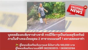 แจ้งประชาสัมพันธ์ บุคคลต้องสังสัย กรณีใช้อาวุธปืนก่อเหตุชิงทรัพย์ภายในห้างทองไทยอุดม 2 ข่าวด่วน เรื่องเด่น 09 เม.ย. 2025 128 share tweet share แจ้งประชาสัมพันธ์ บุคคลต้องสังสัย กรณีใช้อาวุธปืนก่อเหตุชิงทรัพย์ภายในห้างทองไทยอุดม 2 สาขาถนนมนตรี 1 ตลาดสดพลาซ่า ผู้ใดพบเห็นหรือแจ้งเบาะแส มีเงินรางวัล 100,000 บาท ผู้ใดพบเห็นแจ้งเบาะแสได้ที่ 0822633513 /0639033184