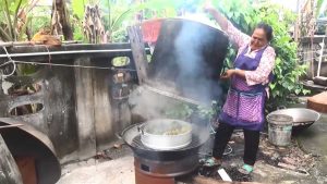 ขนมเทียนและขนมเข่ง ซึ่งเป็นขนมที่ใช้ในการประกอบเครื่องเซ่นไหว้เจ้าและบรรพบุรุษในช่วงเทศกาลตรุษจีน ในปีนี้วัตถุดิบที่ใช้ทำมีราคาสูงขึ้น โดยเฉพาะข้าวเหนียวซื้อเป็นกระสอบแล้วนำมาบดเป็นแป้งเอง โดยขนมเทียนจะทำไส้ 2 ไส้ คือไส้หวานและไส้เค็ม ในรูปแบบสามเหลี่ยม ในวันนี้ขนมเทียนราคาอันละ5 บาท ส่วนขนมเข่งทั้งน้ำตาลทรายแดงและน้ำตาลทรายขาว กก.ละ 120 บาท โดย 1 กก.มี 4 ลูก