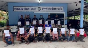 วันที่ 14 ก.ค.67 ผู้สื่อข่าวรายงานว่า พล.ต.ท. ศักย์ศิรา เผือกอ่ำ ผู้บัญชาการตำรวจท่องเที่ยว สั่งการให้ พ.ต.ท.วินิจ บุญชิต สว.ส.ทท.5 กก.2 บก.ทท.3 สั่งการให้ตำรวจท่องเที่ยวเกาะพะงันบูรณาการร่วมฝ่ายปกครอง ตรวจสอบอาชญากรรมการกระทำความผิดในคดี 10 กลุ่มต้องห้าม ความผิดอื่นๆที่ส่งผลกระทบต่ออุตสาหกรรมการท่องเที่ยว การลักลอบเข้าราชอาณาจักรผิดกฎหมาย เจ้าพนักงานตำรวจท่องเที่ยวเกาะพะงัน ควบคุมตัวชาว เมียนมาร์ จำนวน 16 ราย