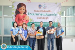 ซึ่งในวันนี้ได้รับเกียรติจาก ผศ.ดร.วิไลพร สมานกสิกรณ์ และ อาจารย์ผกาวัลย์ หนูมาก จากคณะพยาบาลศาสตร์ มหาวิทยาลัยสงขลานครินทร์ เป็นวิทยากรให้ความรู้ในในการดูแลสุขภาพให้แก่ มารดา และลูกเริ่มตั้งแต่ระยะตั้งครรภ์ ระยะหลังคลอด ระยะให้นมบุตร โดยดูแลสุขภาพแม่และเด็กให้ดียิ่งขึ้น และได้มอบอาหารเสริมในการส่งเสริมสุขภาพให้แก่หญิงตั้งครรภ์และหญิงหลังคลอด 6 เดือนที่เข้าร่วมโครงการ ณ ห้องประชุมเสม็ดชุน 1 ชั้น 4 สำนักงานเทศบาลเมืองคอหงส์