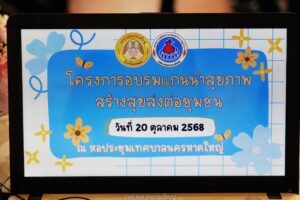 (20 ต.ค. 68) นายกแป้น มอบหมาย ร.ต.ต.สมศิลป์ หนูไชยแก้ว เลขานุการนายกเทศมนตรี เป็นประธาน พร้อมด้วย คณะผู้บริหารฯ สมาชิกสภาเทศบาลฯ และหัวหน้าส่วนราชการ เจ้าหน้าที่ เข้าร่วมโครงการอบรมแกนนำสุขภาพสร้างสุข ส่งต่อชุมชน โดยมีอสม.เทศบาลนครหาดใหญ่ เข้าร่วมทั้ง 4 เขต และมีวิทยากรมาให้ความรู้ ในเรื่อง”แนวทางการเฝ้าระวังทางสุขภาพในชุมชน” โดยพยาบาลวิชาชีพปฏิบัติการ ศูนย์บริการสาธารณสุขรักษาภิกษุอุทิศ