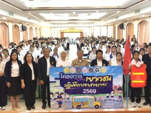 วันที่ 8 มกราคม 2569  เวลา 8.30 น.  ณ ห้องประชุมจอห์นปอล ชั้น 4 โรงเรียนธิดานุเคราะห์  นายเอกชัย แก้วรัตนะ นายอำเภอหาดใหญ่ เป็นประธานในพิธีเปิดโครงการเยาวชนปฏิบัติการอาสาจราจร  ซึ่งจัดโดยสำนักงานขนส่งจังหวัดสงขลา เพื่อเสริมสร้างความรู้ความเข้าใจด้านกฎหมายจราจร สร้างจิตสำนึกที่ดีให้กับเยาวชนในการใช้รถใช้ถนน และสร้างการมีส่วนร่วมในการจัดการสถานศึกษาและชุมชนร่วมกับเจ้าหน้าที่ตำรวจจราจร