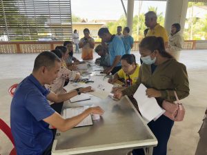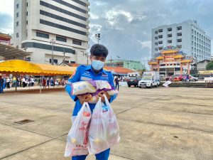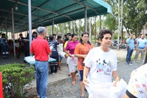 จุดที่ 2 บริเวณ วัดกุศลศรัทธาราม (วัดคุ้งยาง) อำเภอพุนพิน จังหวัดสุราษฏร์ธานี จำนวน 700 ชุด โดยมีคุณบู๊ฮง แซ่อึ๊ง รองประธานมูลนิธิกุศลศรัทธาสุราษฏร์ธานี ,คุณสุทัฒน์ ตันติสันสกุล เลขามูลนิธิฯ พร้อมคณะกรรมการ และหน่วยงานราชการนำโดย นายบุญสงค์ แตงสุข (กำนันอบต.ท่าข้าม) ร่วมพิธีมอบในครั้งนี้