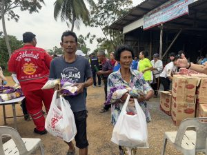 จุดที่ 1 บริเวณ มูลนิธิกุศลศรัทธาสุราษฏร์ธานี จำนวน 1,000 ชุด พร้อมมอบค่าณาปนกิจศพให้แก่ญาติผู้เสียชีวิต จำนวน 10 ราย และบ้านเรือนที่เสียหาย จำนวน 4 หลัง โดยมี คุณสุนธร หวังพัฒนธน ประธานมูลนิธิกุศลศรัทธาสุราษฏร์ธานี ,คุณบู๋ฮง แซ่อึ๊ง รองประธานมูลนิธิฯ ,คุณอรนิณ ตรีสิริเกษม รองประธานมูลนิธิฯ ,คุณประภาส พงศ์สุวณิช รองประธานมูลนิธิฯ , คุณสุทัศน์ ตันติสันสกุล เลขามูลนิธิฯ พร้อมคณะกรรมการฯ ร่วมพิธีมอบในครั้งนี้