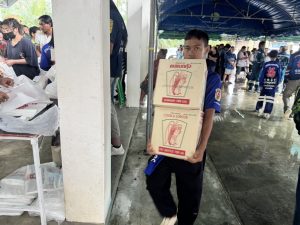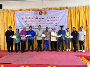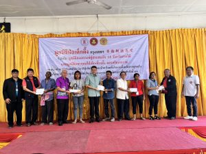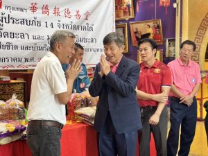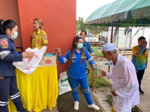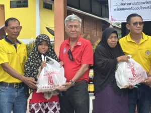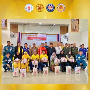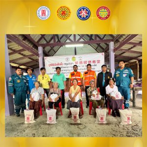 จุดที่ 1 บริเวณ มูลนิธิกุศลศรัทธาสุราษฏร์ธานี จำนวน 1,000 ชุด พร้อมมอบค่าณาปนกิจศพให้แก่ญาติผู้เสียชีวิต จำนวน 10 ราย และบ้านเรือนที่เสียหาย จำนวน 4 หลัง โดยมี คุณสุนธร หวังพัฒนธน ประธานมูลนิธิกุศลศรัทธาสุราษฏร์ธานี ,คุณบู๋ฮง แซ่อึ๊ง รองประธานมูลนิธิฯ ,คุณอรนิณ ตรีสิริเกษม รองประธานมูลนิธิฯ ,คุณประภาส พงศ์สุวณิช รองประธานมูลนิธิฯ , คุณสุทัศน์ ตันติสันสกุล เลขามูลนิธิฯ พร้อมคณะกรรมการฯ ร่วมพิธีมอบในครั้งนี้