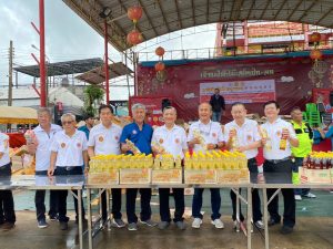 จุดที่ 2 บริเวณ วัดกุศลศรัทธาราม (วัดคุ้งยาง) อำเภอพุนพิน จังหวัดสุราษฏร์ธานี จำนวน 700 ชุด โดยมีคุณบู๊ฮง แซ่อึ๊ง รองประธานมูลนิธิกุศลศรัทธาสุราษฏร์ธานี ,คุณสุทัฒน์ ตันติสันสกุล เลขามูลนิธิฯ พร้อมคณะกรรมการ และหน่วยงานราชการนำโดย นายบุญสงค์ แตงสุข (กำนันอบต.ท่าข้าม) ร่วมพิธีมอบในครั้งนี้