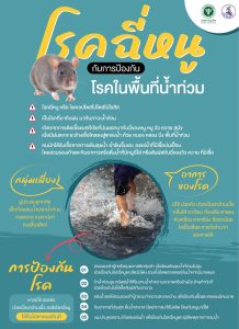 หากมีไข้ ปวดหัว ปวดเมื่อยกล้ามเนื้อ สงสัยโรคฉี่หนู ให้รีบไปหาหมอทันที ข้อมูลจาก : กรมควบคุมโรค กระทรวงสาธารณสุข สอบถามข้อมูลเพิ่มเติม : งานป้องกันและควบคุมโรค กองสาธารณสุขและสิ่งแวดล้อม โทร.074-280000 ต่อ 3407