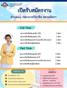 โรงพยาบาลมิตรภาพสามัคคี (มูลนิธิท่งเซียเซี่ยงตึ๊ง) เปิดรับสมัคร พยาบาลวิชาชีพ FULL TIME และ PART TIME หลายอัตรา สนใจสมัครงาน…ติดต่อสมัครด้วยตนเอง ได้ที่ ชั้น 7 อาคารสิริรักษ์ แผนกฝ่ายบุคคล วันจันทร์-วันศุกร์ เวลา 08.30-16.00น. หรือ ส่งใบสมัครทาง E-mail : hr@mitraparphospital.com ติดต่อฝ่ายบุคคล โทร 074801900 ต่อ 7100