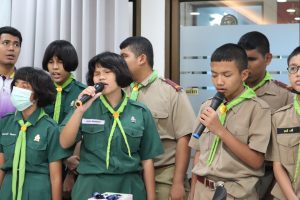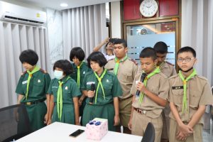 จากนั้นคุณอรุณชัย ศิริมหาชัย ในนามของมูลนิธิมิตรภาพสามัคคี (ท่งเซียเซี่ยงตึ๊ง) หาดใหญ่ ได้กล่าวอวยพรปีใหม่กลับไปยังคณะครูและนักเรียน พร้อมได้มอบทุนการศึกษาและของขวัญวันเด็กของมูลนิธิป่อเต็กตึ๊งไว้เพื่อเป็นขวัญและกำลังใจที่ทางคณะได้เดินทางมากันในวันนี้