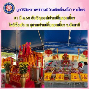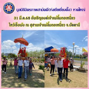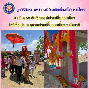 วันจันทร์ที่ 31 มีนาคม พ.ศ.2568 เวลา 08.30 น. มูลนิธิมิตรภาพสามัคคี (ท่งเซียเซี่ยงตึ๊ง) หาดใหญ่ นำโดย คุณกิตติชัย ธรรมศิริพงษ์ รองประธานมูลนิธิฯ ,คุณพิพัฒน์ ปุราวัฒนากุล รองประธานมูลนิธิฯ ,คุณกฤษณ์ อารยานุมาศ รองประธานมูลนิธิฯ ,คุณนิกร คงคาเมธากุล รองประธานมูลนิธิฯ ,คุณชัชฎา ชินกิจการ รองประธานมูลนิธิฯ ,คุณพลกฤษณ์ อารยานุมาศ รองเลขานุการไทย ,คุณจิรชาติ ฤทธิ์สมิตชัย เลขานุการจีน ,คุณกิตติศักดิ์ ปราชญาเปรื่อง หัวหน้าธุรการ , คณณัฐพงค์ สุวรรณรุจิพร รองธุรการ ,คุณชัยวัฒน์ เจริญญาณพันธ์ รองธุรการ ,คุณวิเชียร เดชธีรชัย หัวหน้าแผนกบรรเทาสาธารณภัย-กู้ภัย ,คุณสาธร เดชะเมธากุล หัวหน้าตรวจสอบบัญชี พร้อมด้วยคณะศาสนพิธี คณะเก็งจู ของมูลนิธิฯ ได้อัญเชิญองค์เจ้าแม่ลิ้มกอเหนี่ยวขึ้นประทับเกี้ยว ออกเดินทางจากมูลนิธิมิตรภาพสามัคคี (ท่งเซียเซี่ยงตึ๊ง) หาดใหญ่ ไปร่วมพิธีไหว้คารวะฮวงซุ้ยเนื่องในวันเช็งเม้งเจ้าแม่ลิ้มกอเหนี่ยว ณ สุสานเจ้าแม่ลิ้มกอเหนี่ยว บ้านกรือเซะ ตำบลตันหยงลุโละ อำเภอเมือง จังหวัดปัตตานี