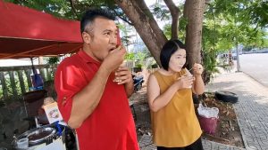 ก่อนที่โควิดจะเกิด โดยที่ขายหลักๆ ก็จะเป็นถนนคนเดิน สงขลาแต่แรก แล้วก็ที่สวน 2 ทะเล และบริเวณแยกพระพุทธ ถนนปละท่าตรงนี้ ในส่วนช่วงเย็น ก็จะเจอได้ที่ถนนชลาทัศน์ บริเวณหน้าโรงแรมเดอะเบส สำหรับราคา ตรงนี้ผมขายมานานแล้ว แก้วละ 30 บาท ทั้งๆที่ต้องแบกรับภาระ ในเรื่อง น้ำกะทิ เพราะกะทิตอนนี้ กิโลละ 100 บาท เหนื่อยเลย ราคา 30 บาททุกเมนู พี่ขายราคา 30 บาท ก็อยากให้ทุกคน ได้กินได้ลอง ได้ลิ้มรส ผมว่าทำมาทำมาแล้ว มีความสุขมากกว่า ผมไม่ได้หวังรวยแล้วล่ะ เพราะว่าอายุขนาดนี้แล้ว จะ 60 ปีแล้ว ถ้าเกิดรวยมันก็คงรวยไปแล้ว แต่ว่ามีความสุขกับงานที่ทำ กับตัวไอติมมากกว่า