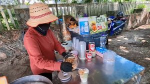 ก่อนที่โควิดจะเกิด โดยที่ขายหลักๆ ก็จะเป็นถนนคนเดิน สงขลาแต่แรก แล้วก็ที่สวน 2 ทะเล และบริเวณแยกพระพุทธ ถนนปละท่าตรงนี้ ในส่วนช่วงเย็น ก็จะเจอได้ที่ถนนชลาทัศน์ บริเวณหน้าโรงแรมเดอะเบส สำหรับราคา ตรงนี้ผมขายมานานแล้ว แก้วละ 30 บาท ทั้งๆที่ต้องแบกรับภาระ ในเรื่อง น้ำกะทิ เพราะกะทิตอนนี้ กิโลละ 100 บาท เหนื่อยเลย ราคา 30 บาททุกเมนู พี่ขายราคา 30 บาท ก็อยากให้ทุกคน ได้กินได้ลอง ได้ลิ้มรส ผมว่าทำมาทำมาแล้ว มีความสุขมากกว่า ผมไม่ได้หวังรวยแล้วล่ะ เพราะว่าอายุขนาดนี้แล้ว จะ 60 ปีแล้ว ถ้าเกิดรวยมันก็คงรวยไปแล้ว แต่ว่ามีความสุขกับงานที่ทำ กับตัวไอติมมากกว่า