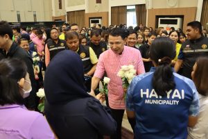 วันที่ 26 มีนาคม 2568 ดร.กิตติ เรืองเริงกุลฤทธิ์ ปลัดเทศบาลนครหาดใหญ่ พร้อมด้วย รองปลัดเทศบาล เจ้าหน้าที่พนักงานเทศบาลนครหาดใหญ่ ร่วมแสดงมุฑิตาจิต แด่ พล.ต.ท.สาคร ทองมุณี นายกเทศมนตรีนครหาดใหญ่ คณะผู้บริหาร และสมาชิกสภาเทศบาลนครหาดใหญ่ ในงาน วันแรกที่ก้าวขยับสู่วันครบวาระที่ภาคภูมิ ณ หอประชุมเทศบาลนครหาดใหญ่