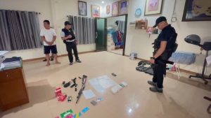 เจ้าหน้าที่จึงตะโกนเรียกให้ออกมามอบตัว แต่ภายในบ้านกับมีการซุ่มมองลงมาและปิดไฟภายในบ้าน เจ้าหน้าที่คีมขนาดใหญ่ตัดกุญแจรั้วบ้าน เมื่อเห็นดังนั้น นายกรรัก ก็ได้รีบวิ่งลงมาเปิดประตูให้เจ้าหน้าที่เข้าตรวจค้น โดยนายกรรัก แจ้งว่า ภายในบ้านมีลูก เมีย และ ป้า ก่อนเข้าตรวจค้นพบอาวุธปืนมีทะเบียนถูกต้องตามกฎหมายจำนวน 4 กระบอก เป็นอาวุธปืนสั้น 2 กระบอกและปืนยาอีก 2 กระบอก แต่จากการสอบสวน นายกรรัก ยังคงให้การปฏิเสธตลอดข้อกล่าวหา อ้างว่าไม่รู้เรื่องที่เกิดขึ้น นอกจากนี้ยังได้เข้าตรวจค้นบ้านพักอีก 1 หลังของนายกรรัก ซึ่งอยู่ในพื้นที่ ต.ควนลัง เพื่อหาหลักฐานเพิ่มเติมด้วย