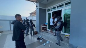 เวลา 06.00 น.วันนี้ (28พ.ค.67) ที่ สภ.รัตภูมิ จ.สงขลา วันที่ 28 พ.ค.67 พล.ต.ต.มนตรี เทศขัน ผบก.ป. พร้อมด้วย พ.ต.อ.พัฒนศักดิ์ บุปผาสุวรรณ รอง ผบก.ป., พ.ต.อ.พงศ์ปณต ชูแก้ว ผกก.6 บก.ป., พ.ต.อ.ภัทรพล ปัทมวงศ์ ผกก.สสน.บก.ป.นำเจ้าหน้าที่ชุดปฏิบัติการพิเศษหนุมานกองปราบ เจ้าหน้าที่ปฏิบัติการ กก.6 บก.ป. บูรณาการกำลังร่วมกับ พ.ต.อ.ศักดา เจริญกุล รอง ผบก.สส.ภ.9 ,พ.ต.อ.สมพงษ์ษ์ สุวรรณวงค์ รอง ผบก.สส.ภ.9 และ พ.ต.อ.ธนวัต เส้งสุย ผกก.สส.3 บก.สส.ภ.9 ,ตำรวจภูธรภาค 9 รวมกว่า 120 นาย