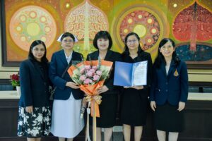 เมื่อวันที่ 4 มีนาคม 2569 ผศ.ดร.ลัพณา กิจรุ่งโรจน์ คณบดี พร้อมด้วย รศ.ดร.กิตติกร นิลมานัต ประธานหลักสูตรฯ และคณะอาจารย์ประจำหลักสูตร ได้ร่วมกันเข้ารับ certificate แสดงความสำเร็จ ณ ห้องประชุม 210 สำนักงานอธิการบดี