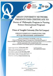 ขอแสดงความยินดีกับ คณะพยาบาลศาสตร์ ในโอกาส “หลักสูตรปรัชญาดุษฎีบัณฑิต สาขาวิชาพยาบาลศาสตร์ (หลักสูตรนานาชาติ) ผ่านการรับรองมาตรฐานคุณภาพการศึกษาระดับหลักสูตรตามเกณฑ์ AUN-QA (ASEAN University Network)”