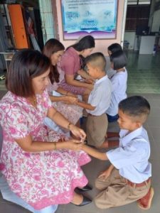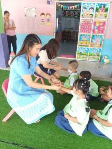 “เปิดเทอมสร้างสุข ให้ความรักก่อนให้ความรู้” ครูท่าจีนอุดมวิทยาเล่นของ ผูกข้อมือมัดใจนักเรียน
