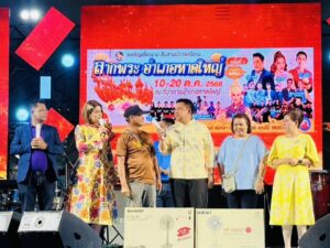 วันที่ 13 ตุลาคม 2568 เวลา 21.00 น. นายเอก ยังอภัย ณ สงขลา นายอำเภอหาดใหญ่ มอบของรางวัลให้แก่ผู้เข้าร่วมงานในกิจกรรม “แจกรางวัลจริง คืนความสุขให้ประชาชน” ภายในงานประเพณีลากพระ อำเภอหาดใหญ่ ครั้งที่ 1 ประจำปี 2568 ท่ามกลางบรรยากาศแห่งความสุข ความสนุกสนาน และเสียงหัวเราะของประชาชนที่มาร่วมงานอย่างคึกคัก โดยมีรางวัลหลากหลายรายการ อาทิ หมอน พัดลม จักรยาน และเครื่องใช้ไฟฟ้าอีกหลายชนิด มอบให้แก่ผู้โชคดีที่ลงทะเบียนร่วมกิจกรรมด้วยบรรยากาศเป็นกันเอง เต็มไปด้วยเสียงปรบมือและรอยยิ้มจากพี่น้องประชาชน ณ เวทีกลางบริเวณหน้าที่ว่าการอำเภอหาดใหญ่ จังหวัดสงขลา