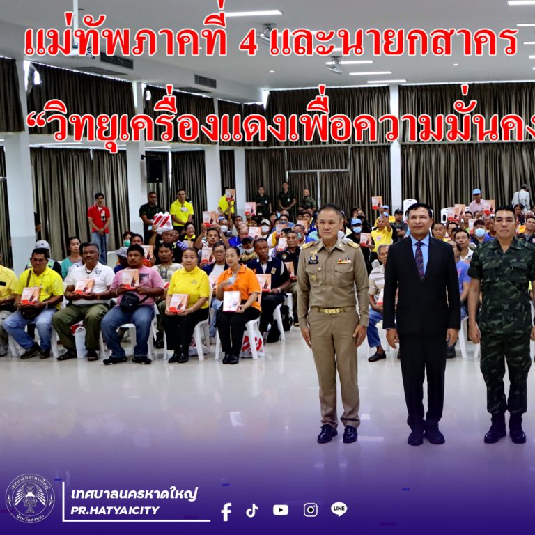 วันที่ 16 พฤศจิกายน 2566 พลโท ศานติ ศกุนตนาค แม่ทัพภาคที่ 4 พบปะสมาชิกเครือข่ายเฝ้าระวัง “วิทยุเครื่องแดงเพื่อความมั่นคง” พร้อมมอบนโยบายการทำงาน เสริมสร้างประสิทธิภาพในการปฏิบัติภารกิจของเครือข่าย โดยมี พล.ต.ท.สาคร ทองมุณี นายกเทศมนตรีนครหาดใหญ่ พร้อมด้วย นายอาหมัด เบ็ญอาหลี รองนายกเทศมนตรีนครหาดใหญ่ คุณบงกต กาญจนแก้ว ประธานศูนย์วิทยุ เครื่องแดงเพื่อความมั่นคง ร่วมกันจัดหาวิทยุเครื่องแดง จำนวน 12