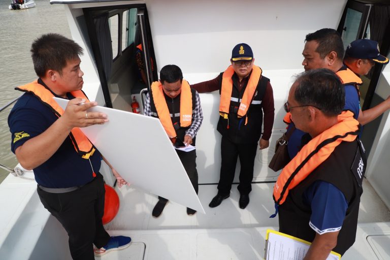 ล่องเรือสำรวจสิ่งกีดขวางทางน้ำบริเวณร่องน้ำในทะเลสาบสงขลา